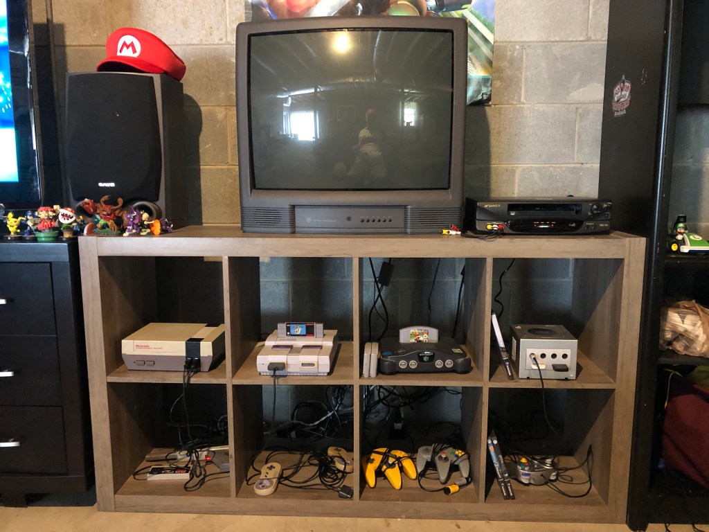 The NES is from a consignment store in Westmoreland. The SNES is from Facebook Marketplace. I bought the N64 from a buddy. The GC was given to me by a coworker!!!